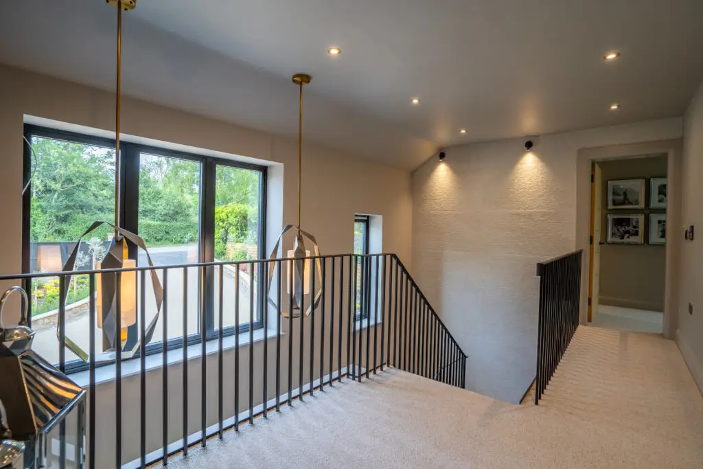 To make the house as energy efficient as possible, Casamia Homes installed a PV solar system as well as underfloor heating which runs off an Air Source Heat Pump. Connected Home Systems were commissioned to design and install an array of modern smart control systems operating; heating and A/C ventilation, networks, CCTV, Audio/Visual and lighting systems throughout both the interior and exterior of the property.